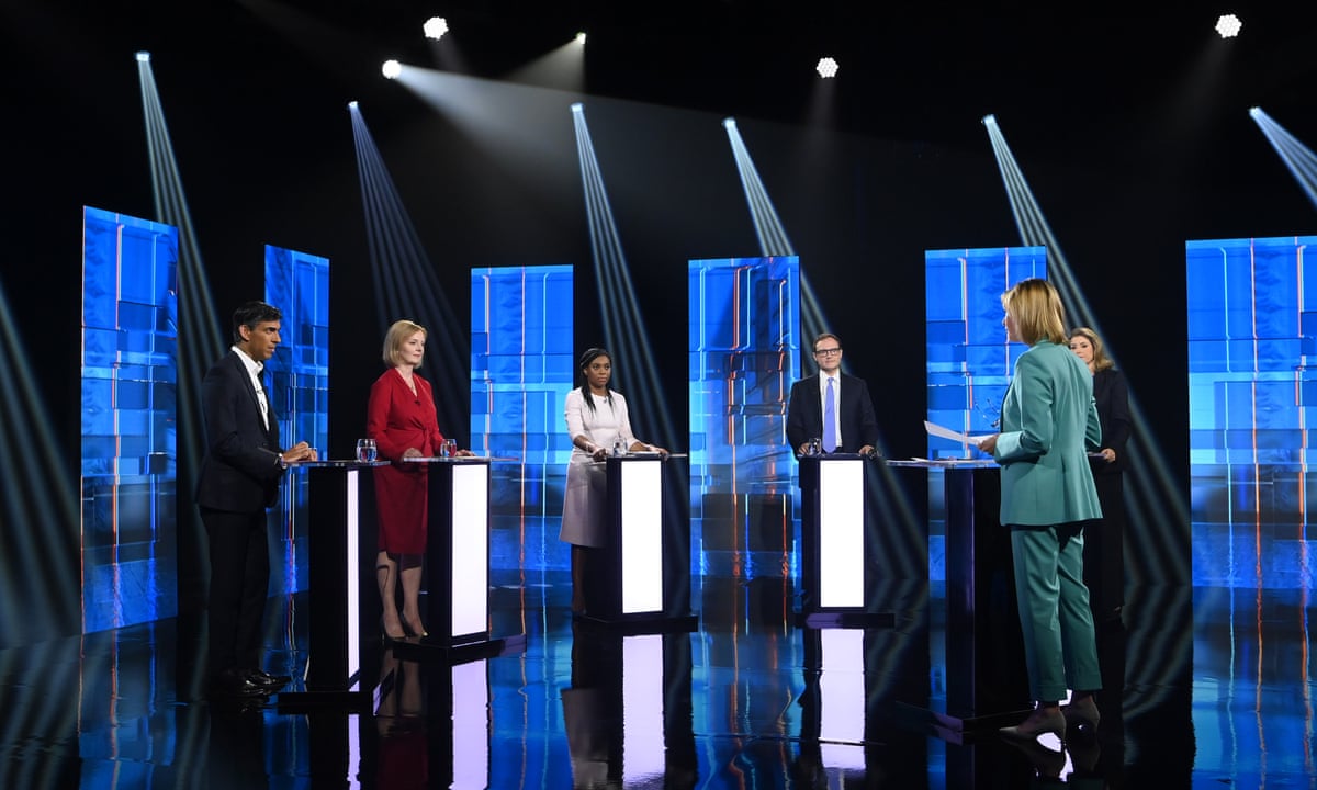 1 day agoTory leadership candidates from left to right Rishi Sunak Liz Truss Kemi BadenochTom Tugendhat and Penny Mordaunt with ITV debate presenter Julie Etchingham. The fourth round of voting. 1 day agoThe Tory MPs competing to become the next prime minister have gone head-to-head in an ITV televised leadership debate.